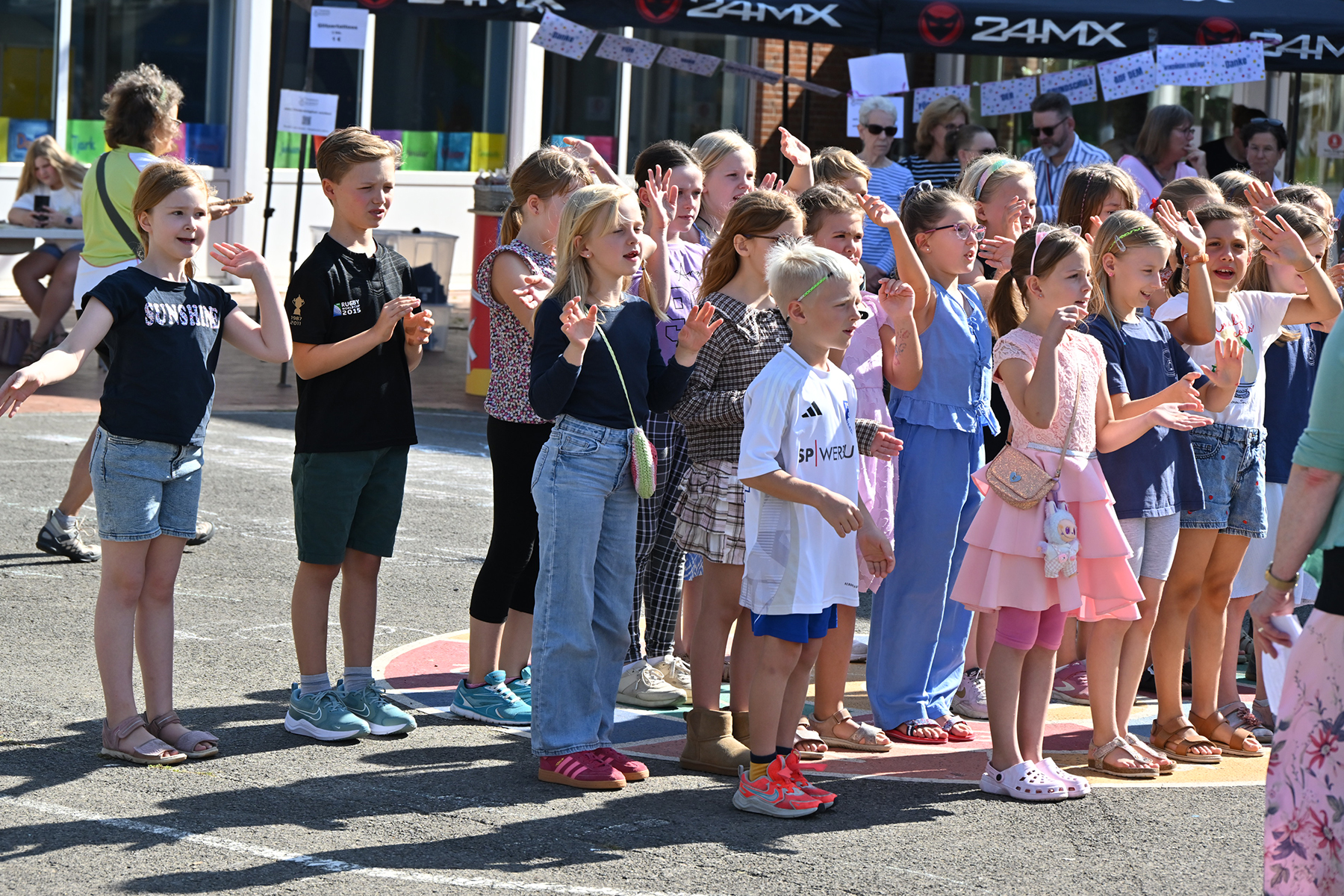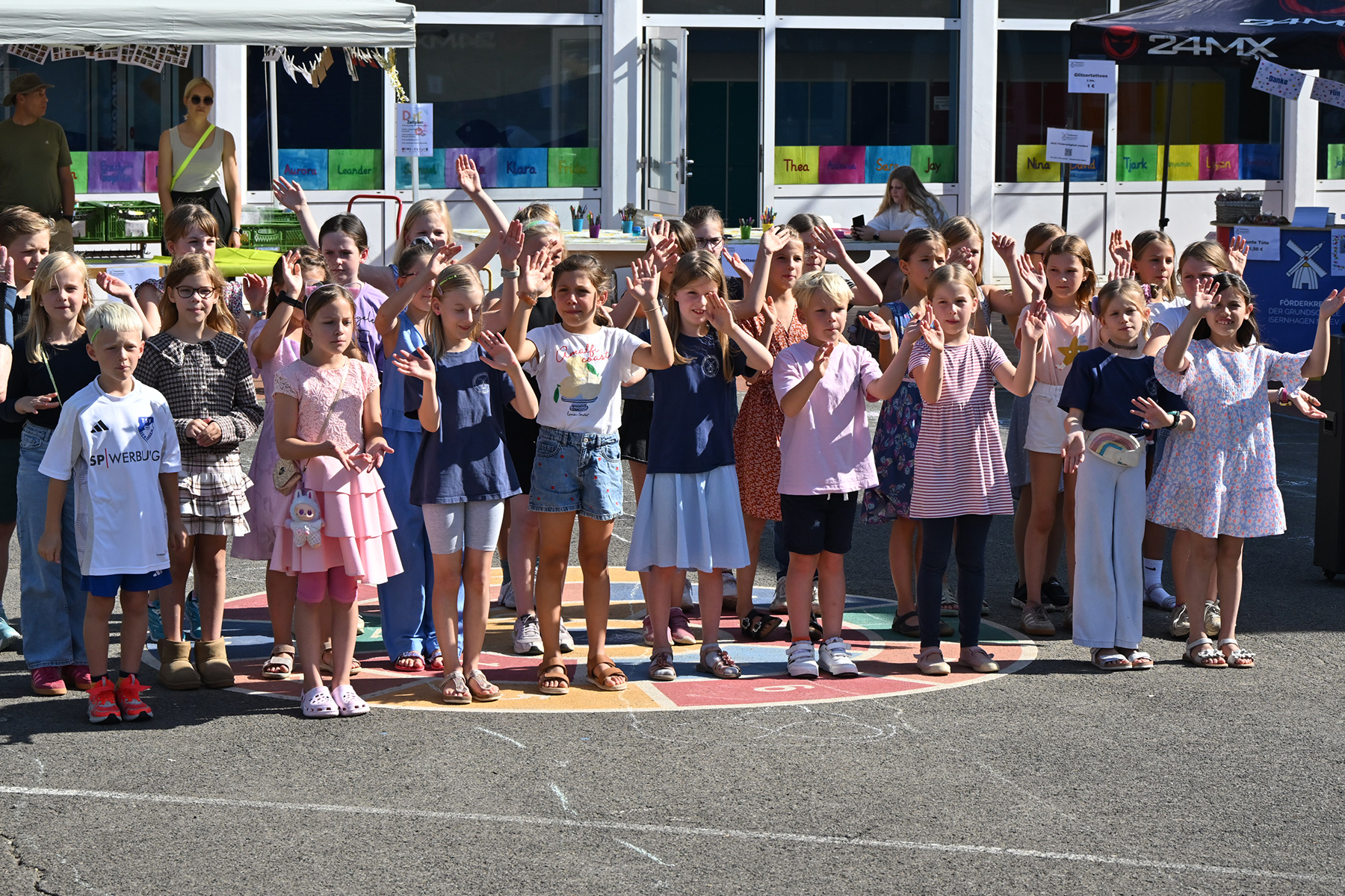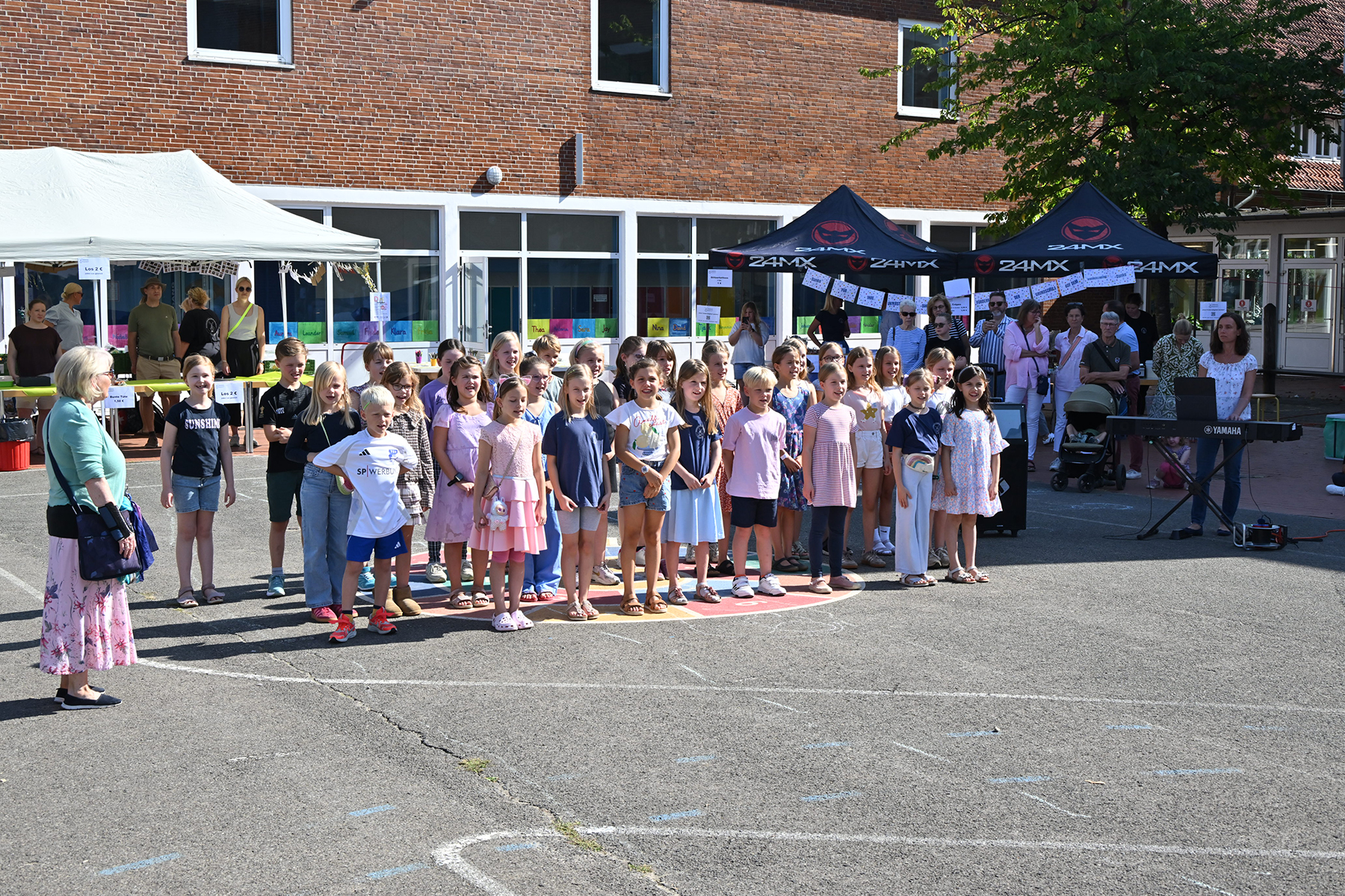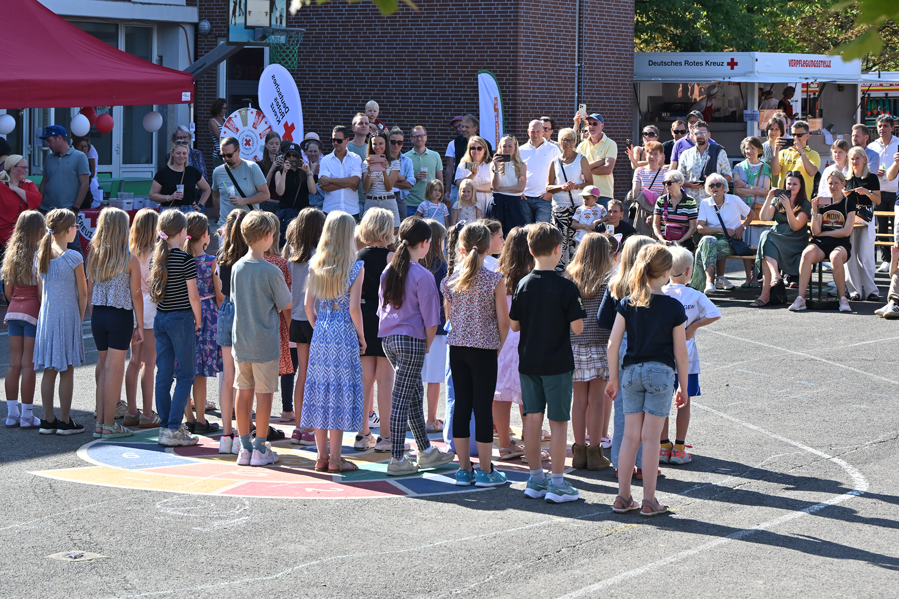 Den Auftakt der Auftritte machte der Schulchor unter der Leitung von Mareike Hußmann. Die 35 Kinder boten drei Lieder, darunter eigens ein Lied für das Dorffest, mit dem Refrain “Große und kleine Leute, kommt doch zu uns heran, wir feiern zusammen heute, unser Dorffest fängt gut an.” Mit strahlenden Augen verließen die Dritt- und Viertklässler unter großem Applaus von Eltern, Großeltern, Onkeln, Tanten und Verwandten die Bühne.