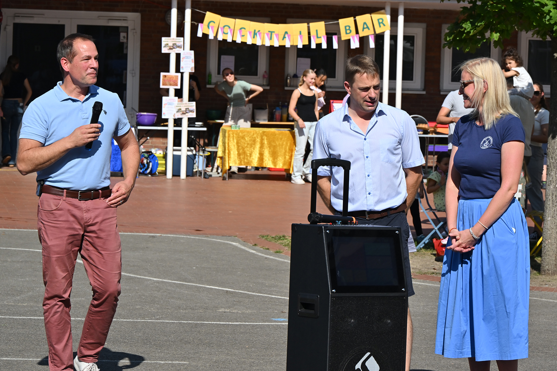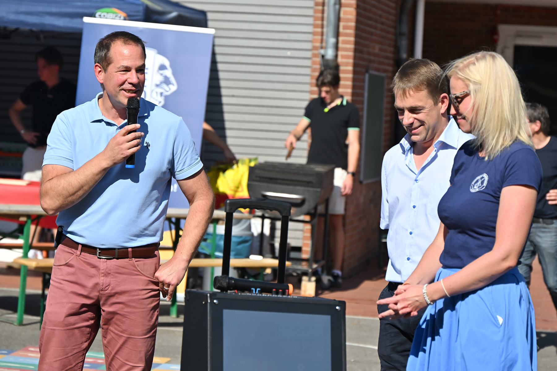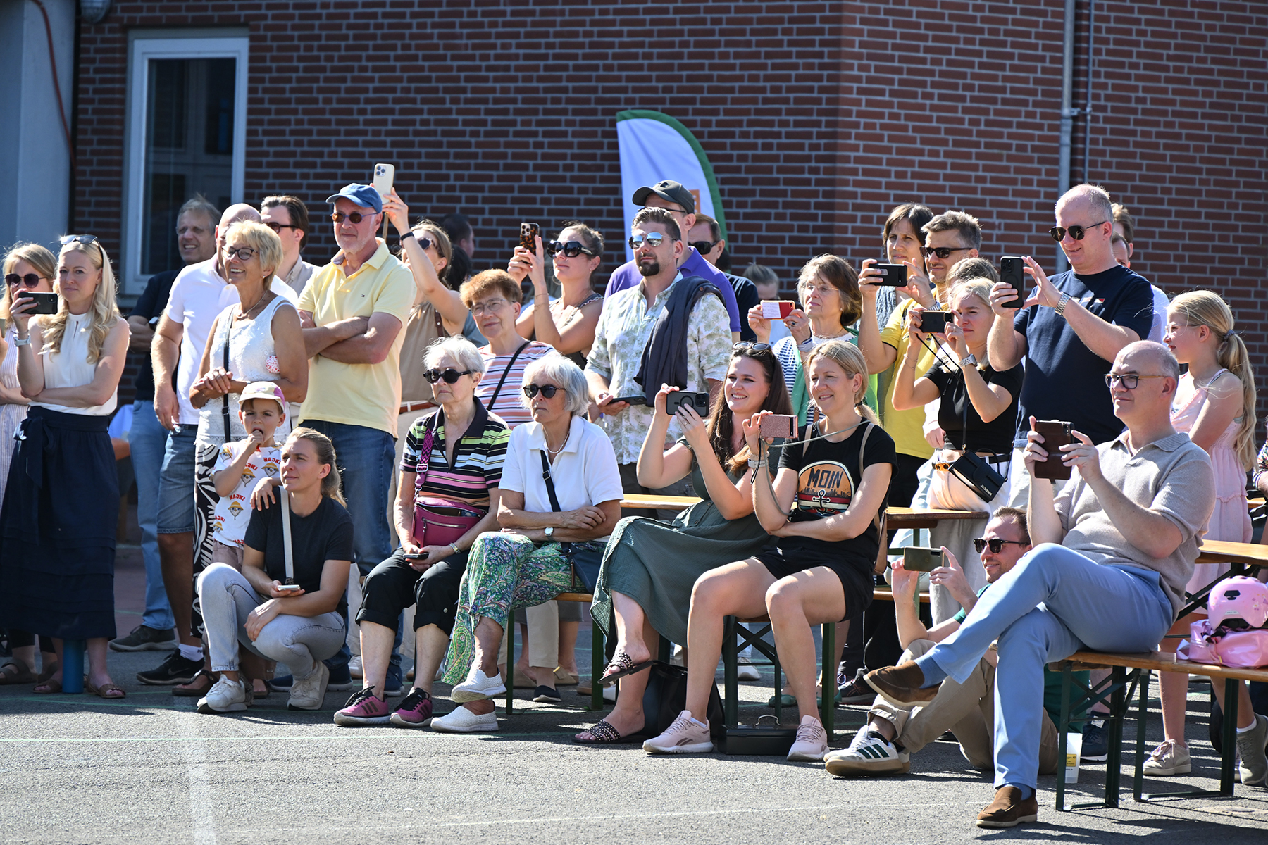 N.B.-Ortsbürgermeister Heinrich Bätke begrüßte am Mittag die Gäste auf dem Schulhof – aus N.B. und den umliegenden Ortschaften. “Schön, dass ihr alle da seid”, so Bätke. “Ihr habt ja bestes Wetter mitgebracht, wir haben uns um den Rest gekümmert.” Der Ortsbürgermeister versprach, dass es ein runder Tag werde – und sollte recht behalten.