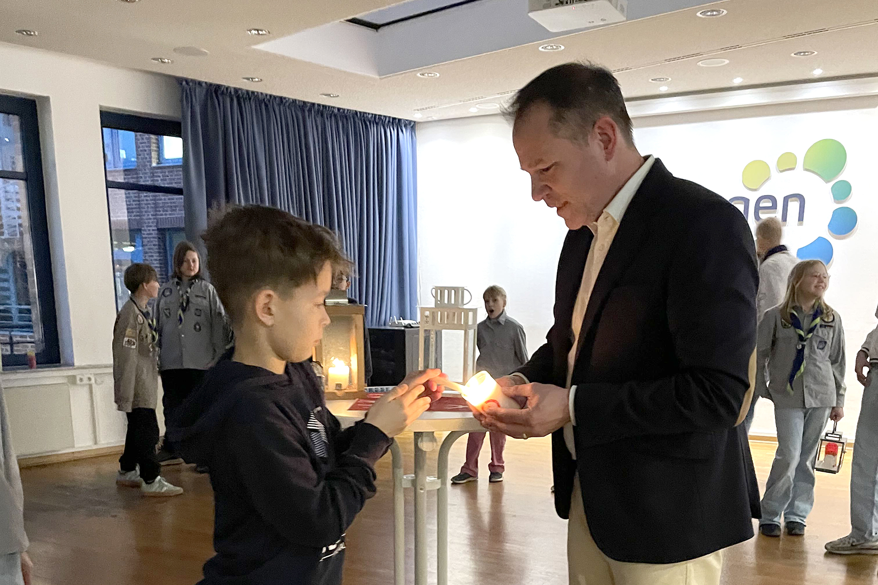 Tim Mithöfer begrüßte Hans Christian Henning und die Pfadfinder im Rathaus. Henning erläuterte in einer kurzen Einführung, wie das Friedenslicht aus Bethlehem nach Isernhagen gelangt, und berichtete von Erfahrungen auf dem Weg. Auch die Pfadfinder erzählten von Erlebnissen aus diesem Jahr. Anschließend konnten die Anwesenden ihre Kerzen an der mitgebrachten Flamme entzünden. Mithöfer übernahm das Licht stellvertretend für die Isernhagener.